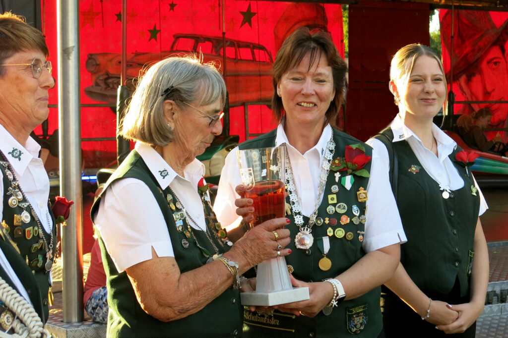 Der Sonntag begann festlich mit einem sehr gut besuchten Gottesdienst im Festzelt unter der Leitung von Pastorin Raphaela-Carina Gerlach. Im Anschluss wurde die neue Majestät der Bogenabteilung ermittelt: Mit beeindruckender Treffsicherheit sicherte sich Nikita Lis den Titel und wird die Bogensparte nun als Königin 2025/26 repräsentieren. Beim anschließenden Festessen begrüßte das Schützenkorps zahlreiche Abordnungen befreundeter Vereine – ein Höhepunkt, der die Verbundenheit über die Gemeindegrenzen hinaus unterstrich.